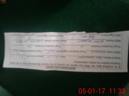 | Monitoring Date: 05-01-2017 | Start Time: 05-01-2017 11:03 AM | End Time: 05-01-2017 11:35 AM | Name of MEA: AL**** HU**** | |