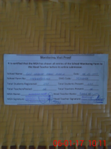 | Attendance Register | Head Teacher | MEA with School | Visit Proof |