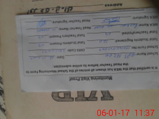 | Attendance Register | Head Teacher | MEA with School | Visit Proof |