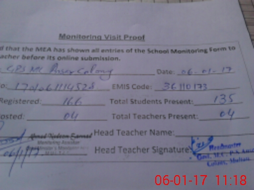| EMIS Code: 36110173 | Name of School: GPS MC ANSAR COLONY BUDHLA ROAD MULTAN | |||