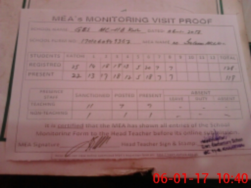 | Attendance Register | Head Teacher | MEA with School | Visit Proof |