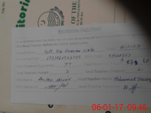 | Certified that this School was Inspected by the Undersigned MEA/DMO Today and the Information Stated Above is as Per Record. | |||||