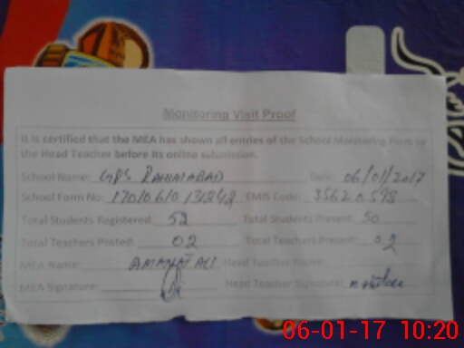 | EMIS Code: 35620598 | Name of School: GPS RAHIM ABAD CHAK NO. 78 RB | |||