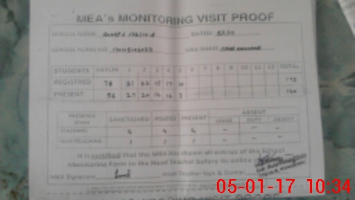 | Attendance Register | Head Teacher | MEA with School | Visit Proof |