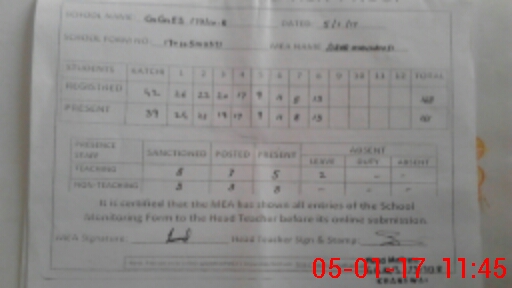 | Attendance Register | Head Teacher | MEA with School | Visit Proof |