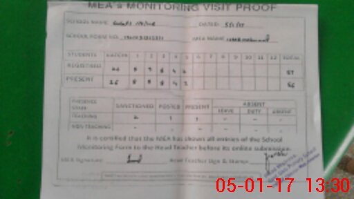 | Attendance Register | Head Teacher | MEA with School | Visit Proof |
