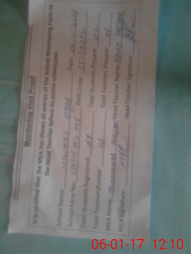 | Attendance Register | Head Teacher | MEA with School | Visit Proof |