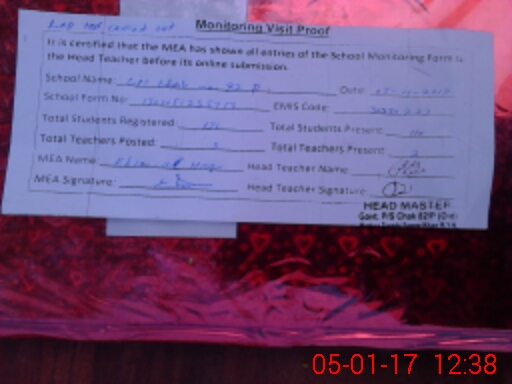 | Attendance Register | Head Teacher | MEA with School | Visit Proof |
