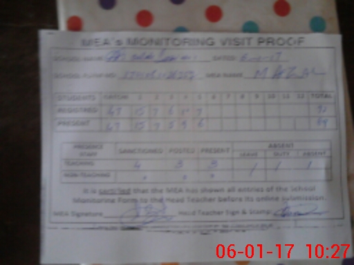 | Certified that this School was Inspected by the Undersigned MEA/DMO Today and the Information Stated Above is as Per Record. | |||||