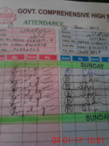 | Name: SY**** AL**** HA**** NA**** Designation: (School Headmaster's/Headmistress's) Principal Phone/Cell Number: 03**** |