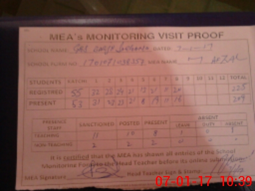 | Certified that this School was Inspected by the Undersigned MEA/DMO Today and the Information Stated Above is as Per Record. | |||||
