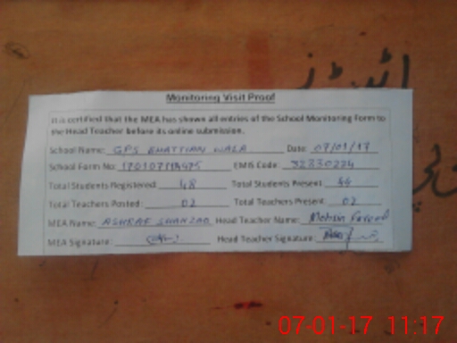| EMIS Code: 32330224 | Name of School: GPS BHUTTIAN WALA | |||