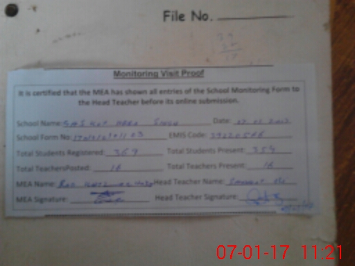 | Attendance Register | Head Teacher | MEA with School | Visit Proof |