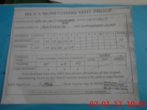 | Certified that this School was Inspected by the Undersigned MEA/DMO Today and the Information Stated Above is as Per Record. | |||||