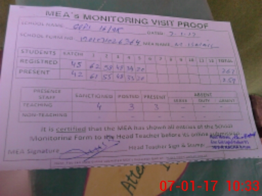 | Attendance Register | Head Teacher | MEA with School | Visit Proof |