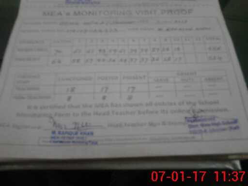 | Certified that this School was Inspected by the Undersigned MEA/DMO Today and the Information Stated Above is as Per Record. | |||||