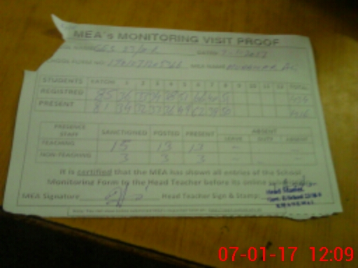 | Attendance Register | Head Teacher | MEA with School | Visit Proof |