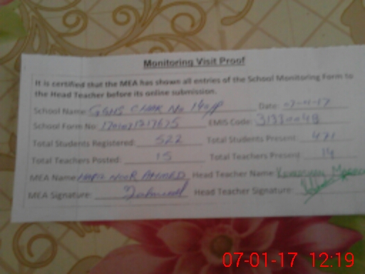 | Certified that this School was Inspected by the Undersigned MEA/DMO Today and the Information Stated Above is as Per Record. | |||||