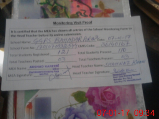 | EMIS Code: 36140167 | Name of School: GGPS BAHADAR PUR NO. 2 JALALPUR PIRWALA | |||