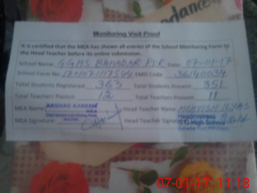 | EMIS Code: 36140034 | Name of School: GGHS BAHADAR PUR JALALPUR PIRWALA | |||