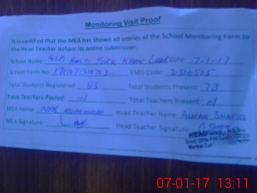 | EMIS Code: 31310525 | Name of School: GGPS BASTI TURK KHAN LAAR | |||