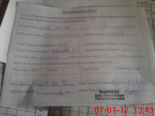 | Certified that this School was Inspected by the Undersigned MEA/DMO Today and the Information Stated Above is as Per Record. | |||||