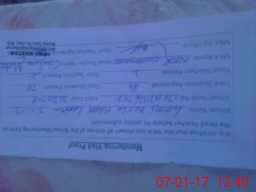 | Certified that this School was Inspected by the Undersigned MEA/DMO Today and the Information Stated Above is as Per Record. | |||||