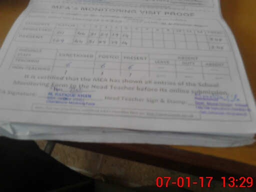 | Attendance Register | Head Teacher | MEA with School | Visit Proof |