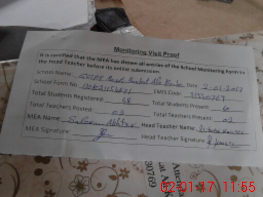 | Certified that this School was Inspected by the Undersigned MEA/DMO Today and the Information Stated Above is as Per Record. | |||||