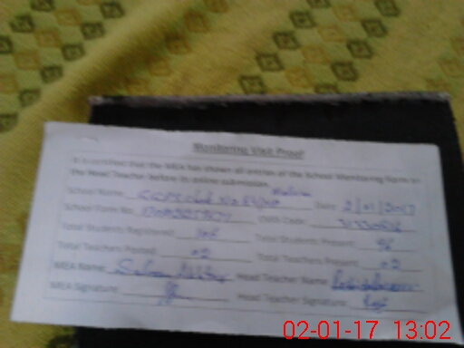 | Attendance Register | Head Teacher | MEA with School | Visit Proof |