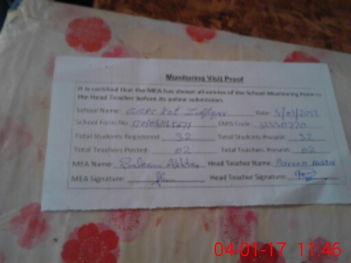 | Attendance Register | Head Teacher | MEA with School | Visit Proof |