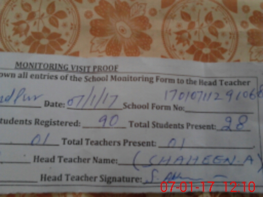 | Name: MI**** SA**** Designation: (School Headmaster's/Headmistress's) PST Phone/Cell Number: 03**** |