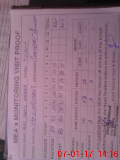 | Certified that this School was Inspected by the Undersigned MEA/DMO Today and the Information Stated Above is as Per Record. | |||||