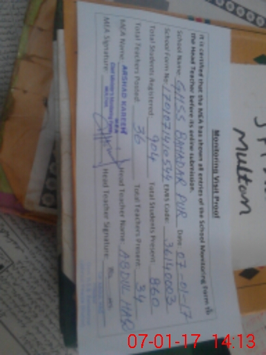 | EMIS Code: 36140003 | Name of School: GHSS BAHADAR PUR | |||