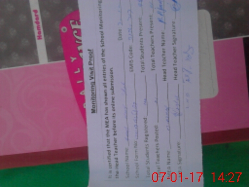 | Attendance Register | Head Teacher | MEA with School | Visit Proof |