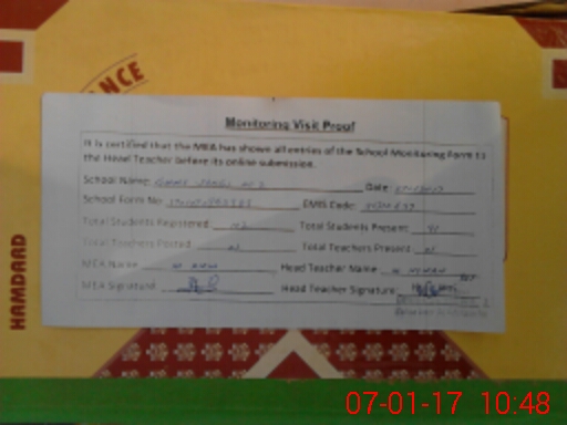 | Attendance Register | Head Teacher | MEA with School | Visit Proof |