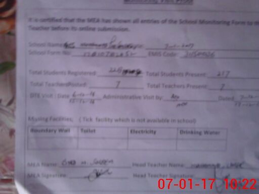 | Certified that this School was Inspected by the Undersigned MEA/DMO Today and the Information Stated Above is as Per Record. | |||||