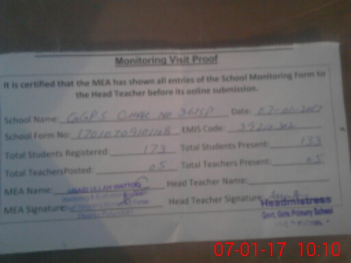 | District: PAKPATTAN | Tehsil: PAKPATTAN | Markaz: PAKPATTAN 1 - FEMALE | Level: Primary | |