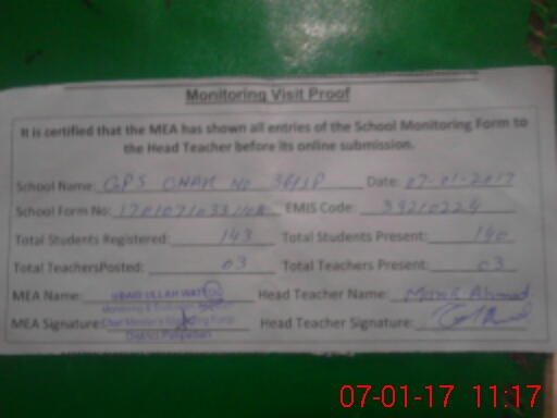 | Attendance Register | Head Teacher | MEA with School | Visit Proof |