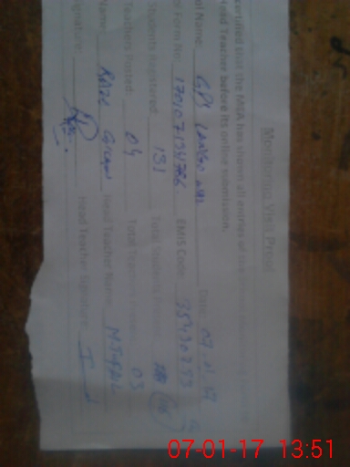 | Certified that this School was Inspected by the Undersigned MEA/DMO Today and the Information Stated Above is as Per Record. | |||||