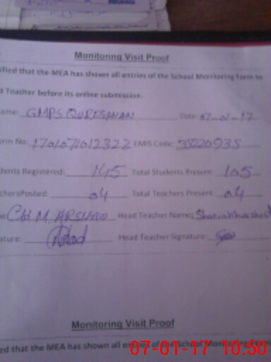 | EMIS Code: 33220935 | Name of School: GMPS QURESHIAN | |||