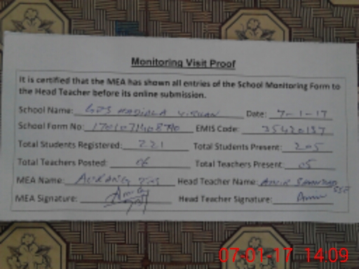 | Certified that this School was Inspected by the Undersigned MEA/DMO Today and the Information Stated Above is as Per Record. | |||||