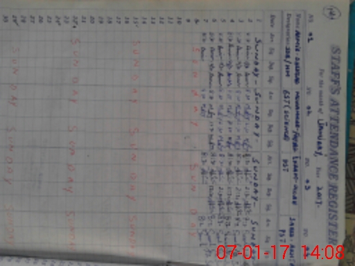 | CNIC | Full Name | Designation | R/C | Absence During Last Calender Month |
