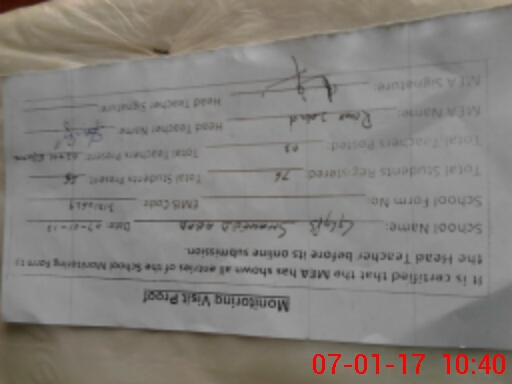 | Certified that this School was Inspected by the Undersigned MEA/DMO Today and the Information Stated Above is as Per Record. | |||||