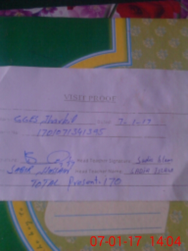 | Attendance Register | Head Teacher | MEA with School | Visit Proof |