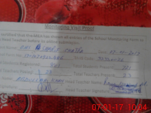 | EMIS Code: 32330026 | Name of School: GHS SHARIF CHAJRA | |||