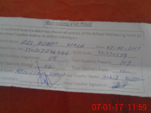 | EMIS Code: 32330179 | Name of School: GPS ADAM WALA | |||
