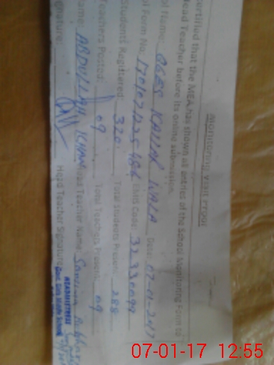 | Certified that this School was Inspected by the Undersigned MEA/DMO Today and the Information Stated Above is as Per Record. | |||||