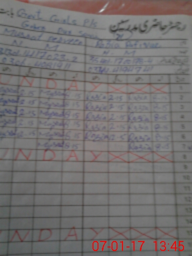 | CNIC | Full Name | Designation | R/C | Absence During Last Calender Month |