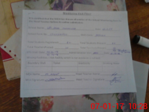 | Attendance Register | Head Teacher | MEA with School | Visit Proof |